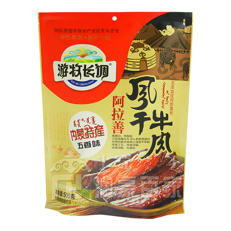 6. "阿拉善牛肉干":牛肉干是阿拉善左旗的传统食品,肉质鲜美,便于保存和携带。